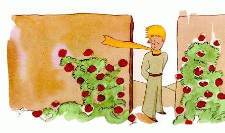 One time, however, the little prince visited a garden of roses in the planet earth. There are a lot of roses. And they exactly looked like the rose he took care. All of them looked the same.