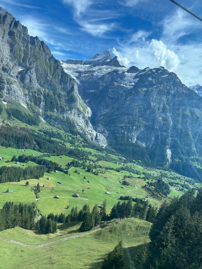 Our day was dedicated to exploring nature, starting with a trip to Grindelwald. The scenery reminded me of the classic anime, “Heidi, Girl of the Alps,” with its lush green hills and picturesque houses. We climbed Grindelwald First, offering amazing views of the Eiger, Mönch, and Jungfrau peaks. Our attempt to visit Lake Bachalpsee, while more challenging than expected, was rewarded with breathtaking views.