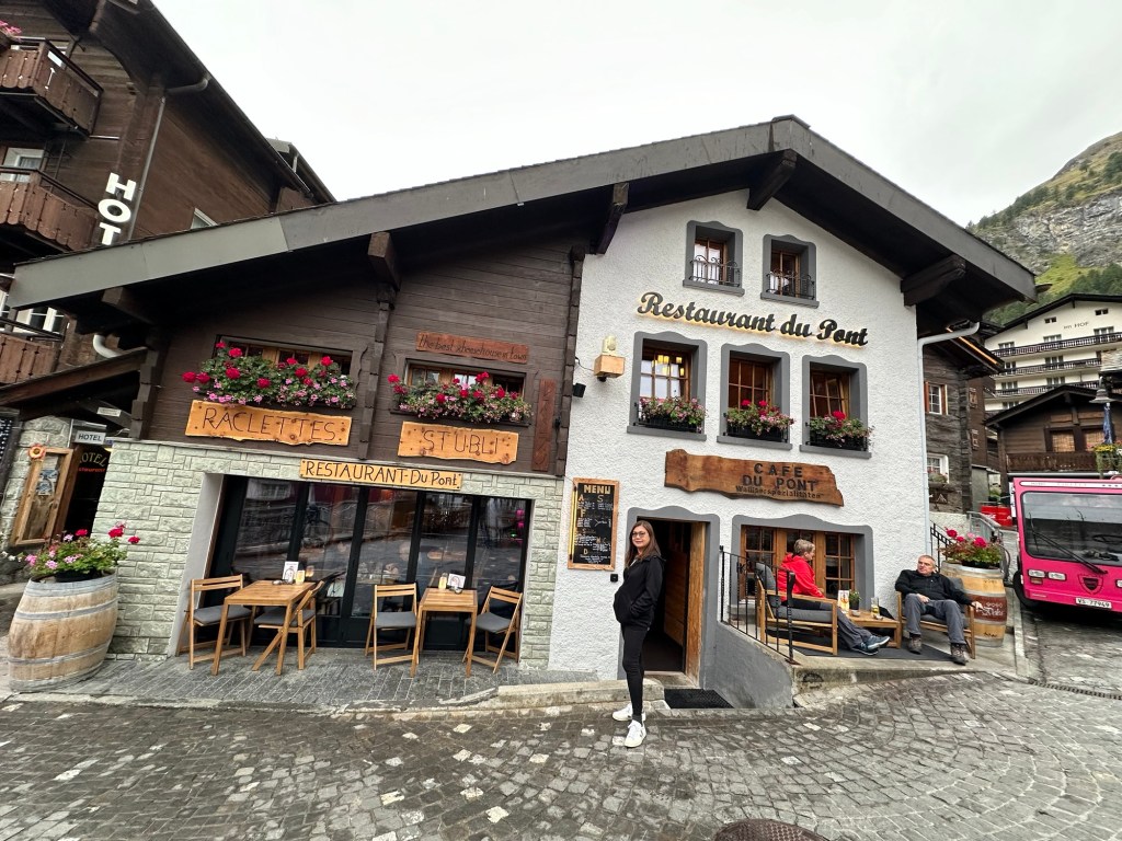 For dinner, we visited Du Pont, one of Zermatt’s oldest and most traditional restaurants, enjoying local specialties like veal sausage with Rösti and raclette. After dinner, despite the earlier rain, we were treated to a brief but mesmerizing view of the Matterhorn. This fleeting glimpse, combined with our visit to the Matterhorn Museum earlier in the day, deepened our appreciation for the mountain’s history and allure.